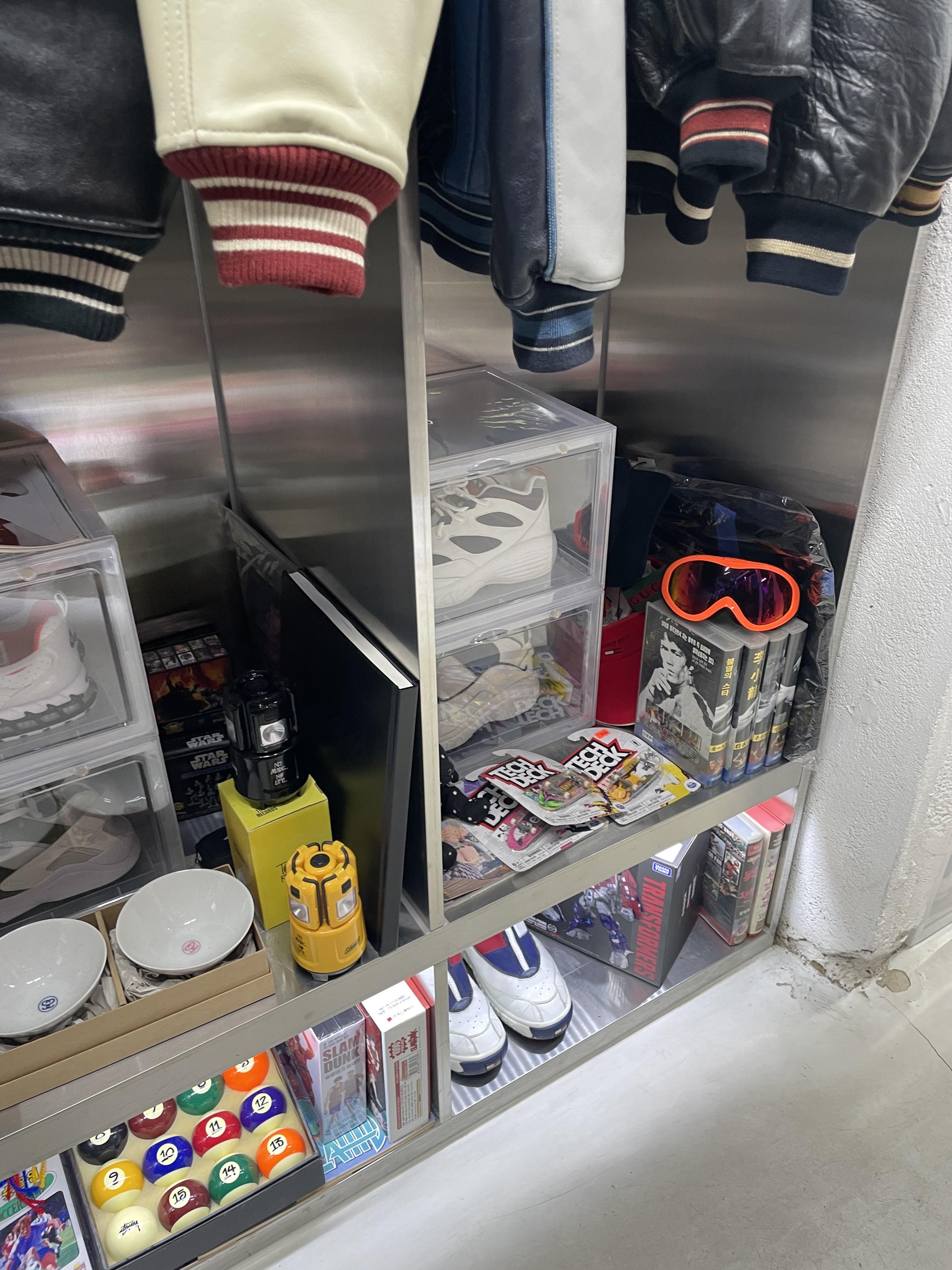 저 밑에 스투시 포켓볼 공까지 ㅋㅋ 스투시가 종종 포켓볼 공 아트웍을 많이 사용하는데 이런 소품같은게 실제로 있을줄이야...! 이런건 진짜 어디서 바잉하시는 걸까 ㅋㅋ 진짜 대단하심.