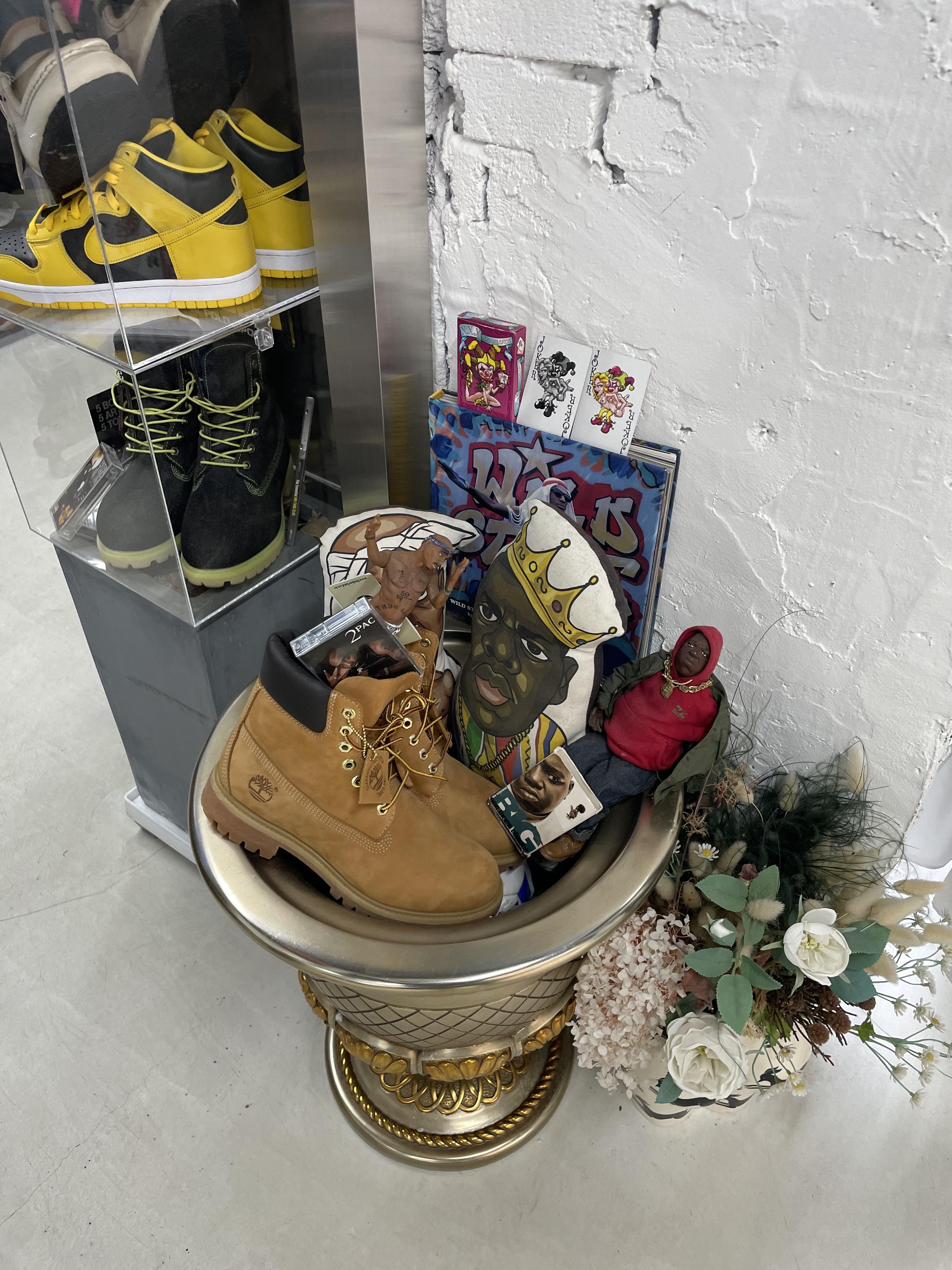 주로 신발, 바시티자켓, 모자 등의 패션잡화를 취급하지만 그 외에도 한 시대를 풍미했던 90년대풍의 소품들과 힙합 LP, 테이프, CD 등의 음반도 판매한다.
