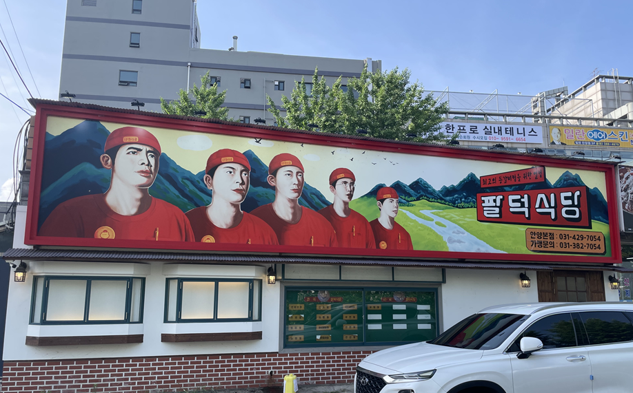 뭔가 북한같은 느낌...! 이런 레트로한 감성이 팔덕식당의 컨셉인 것 같아요.