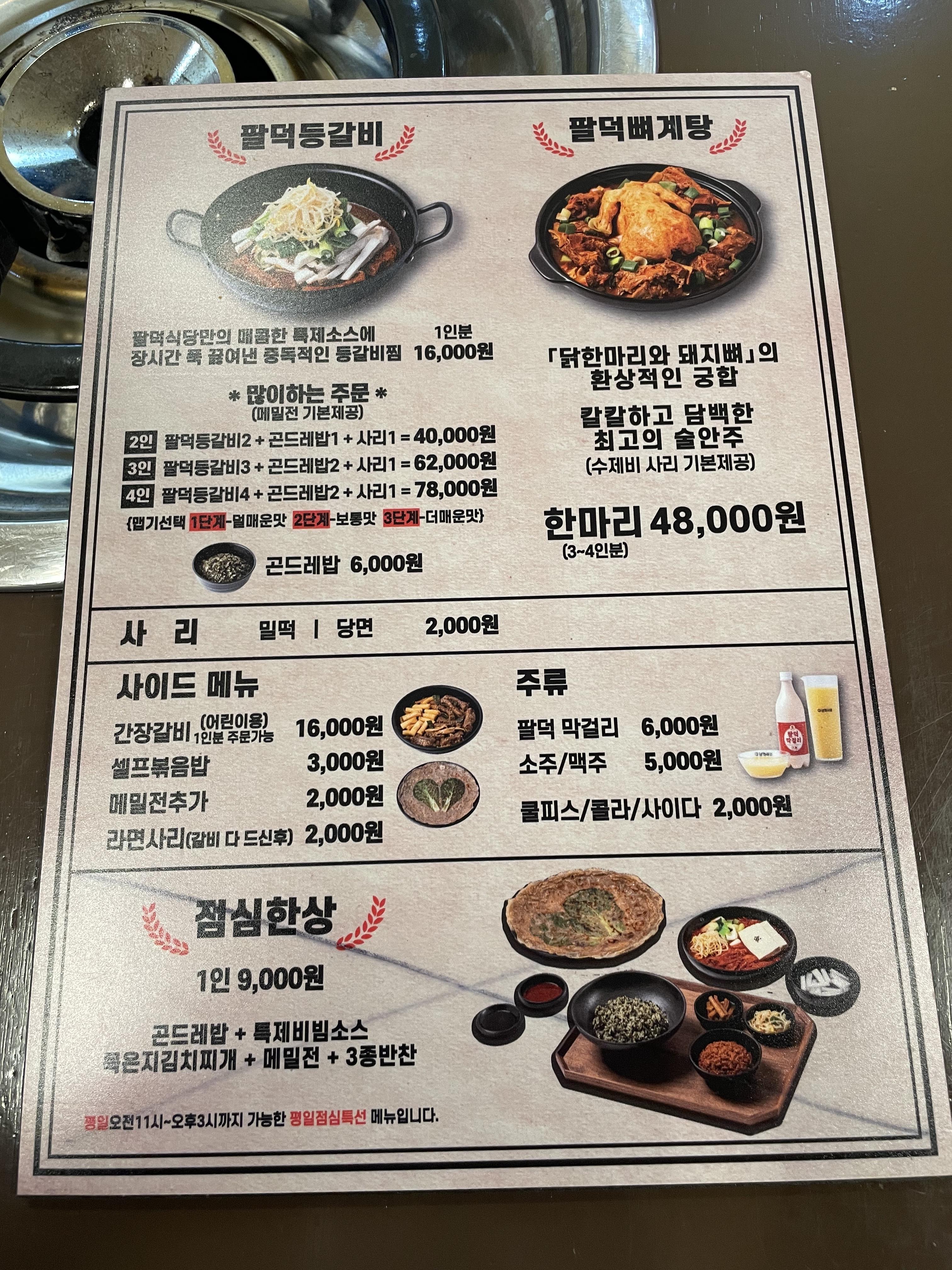 메뉴판입니다. 심플하게 등갈비랑 뼈계탕 2개 메뉴인데요!