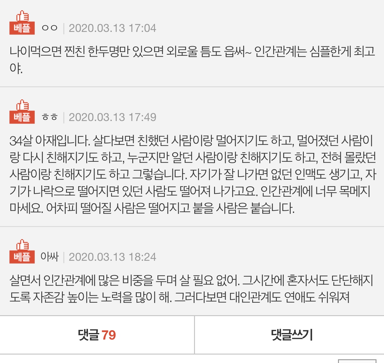 그런 점에서 이 글의 서두에 제시한 커뮤니티의 고민사연에 대한 베스트 댓글은 정말 그럴듯하다.
